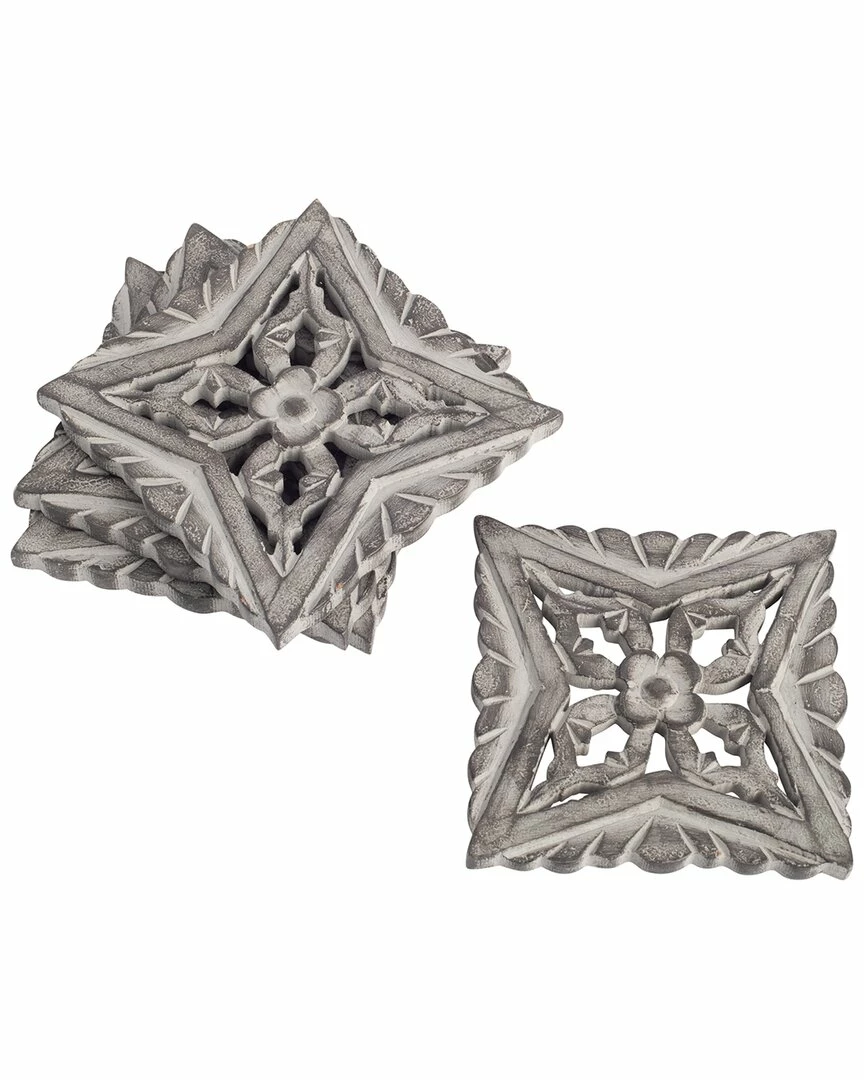 Home Essentials 4in Set Of 4 Carve Burst Grey Wd Coaster Serveware