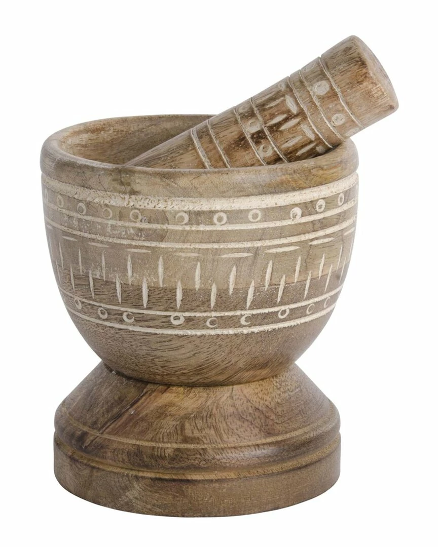 Home Essentials Etched Wood Mortar & Pestle Kitchen Tools & Gadgets