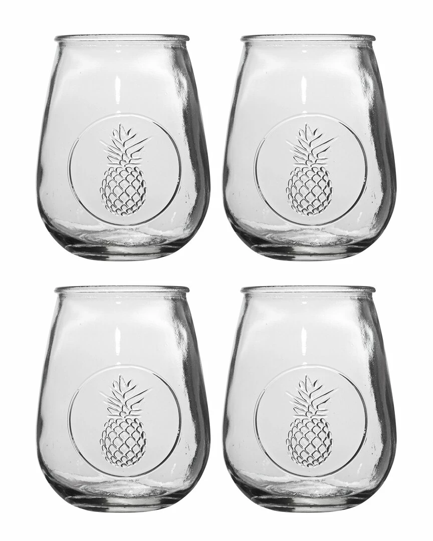Home Essentials Retroware Set Of 4 Pineapple Stemless Drinkware