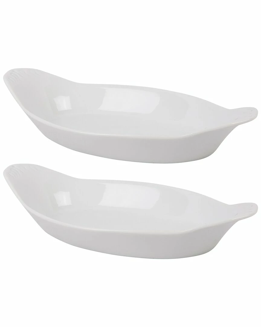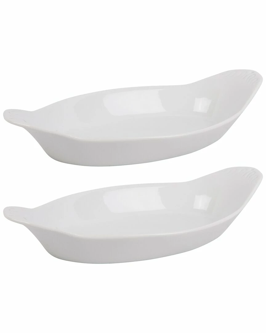 Home Essentials Set Of 2 10in Porcelain Oval Bakr Handle Serveware