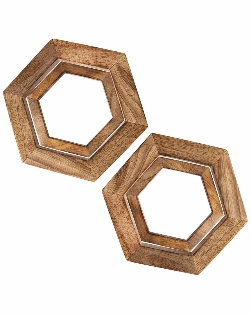 Home Essentials Set Of 2 Open Hexagon Wood Trivets Serveware