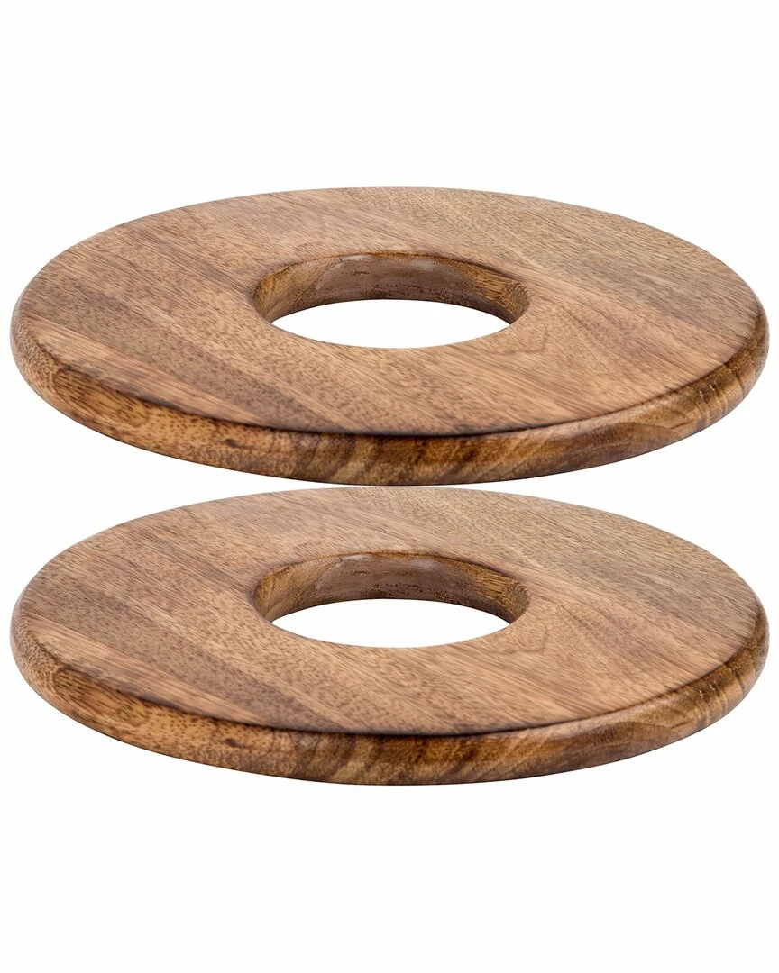 Home Essentials Set Of 2 Round Modern Open Wood Trivet Serveware