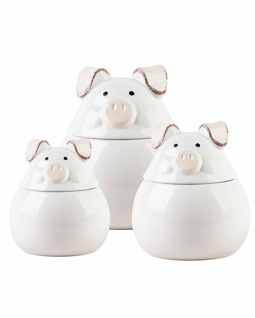Home Essentials Set Of 3 Floppy Ear Pigs Canister Kitchen & Pantry Storage