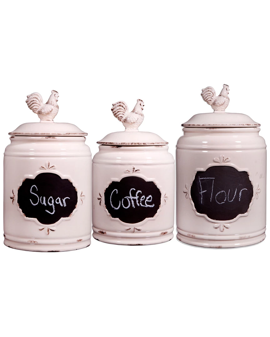 Home Essentials Set Of 3 Ivory Chalkboard Canisters Kitchen & Pantry Storage
