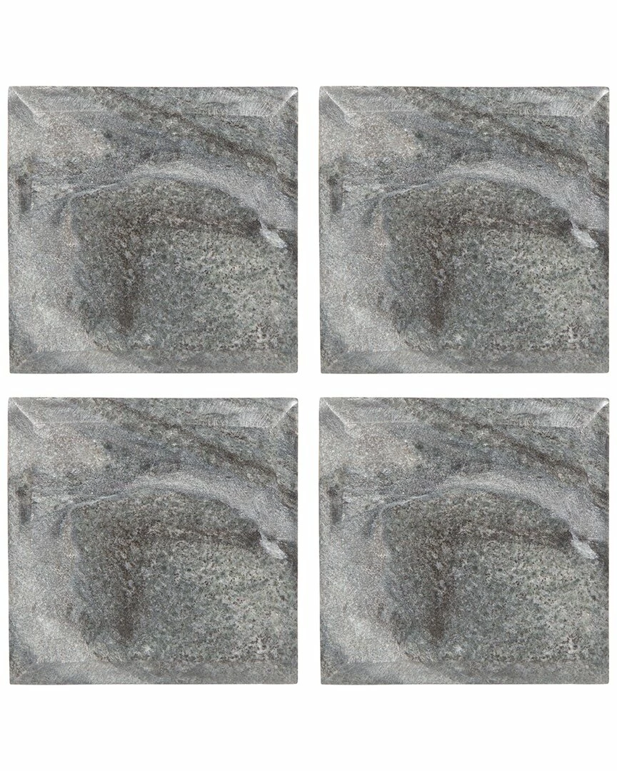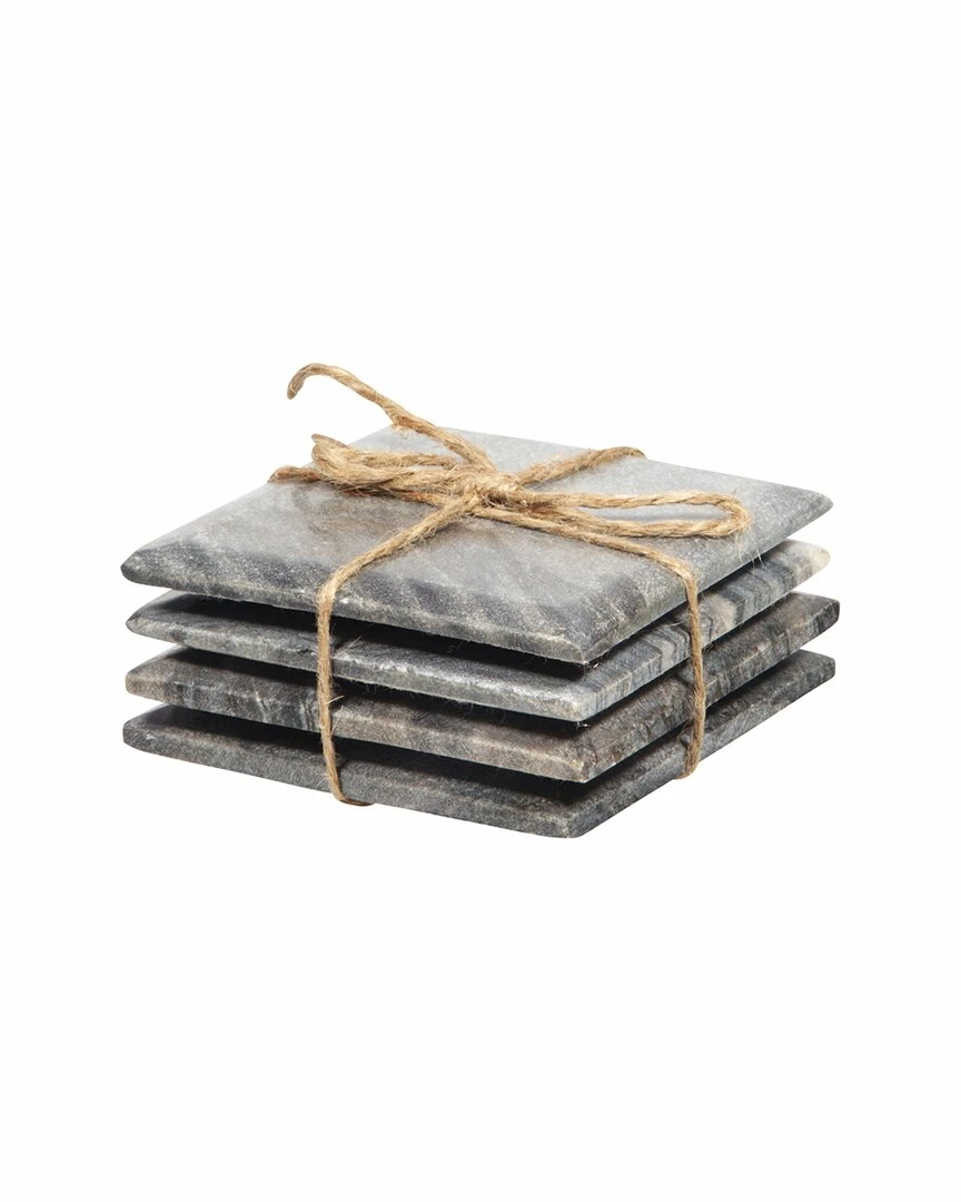 Home Essentials Set Of 4 4in Gray Square Marble Coaster Serveware