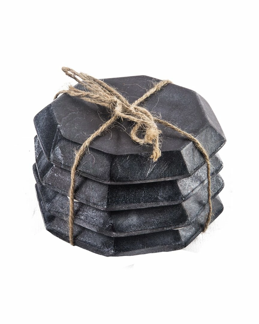 Home Essentials Set Of 4 4in Octagon Marble Coaster Serveware