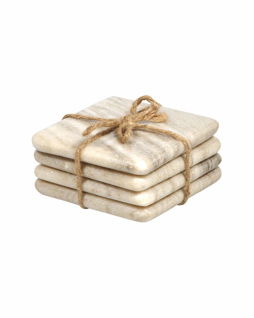 Home Essentials Set Of 4 4in Rolled Edge Marble Coaster Serveware