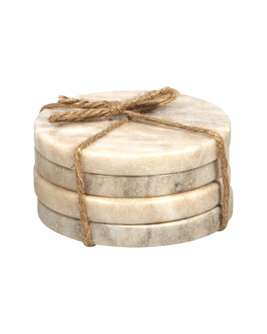 Home Essentials Set Of 4 4in Round Marble Coaster Serveware