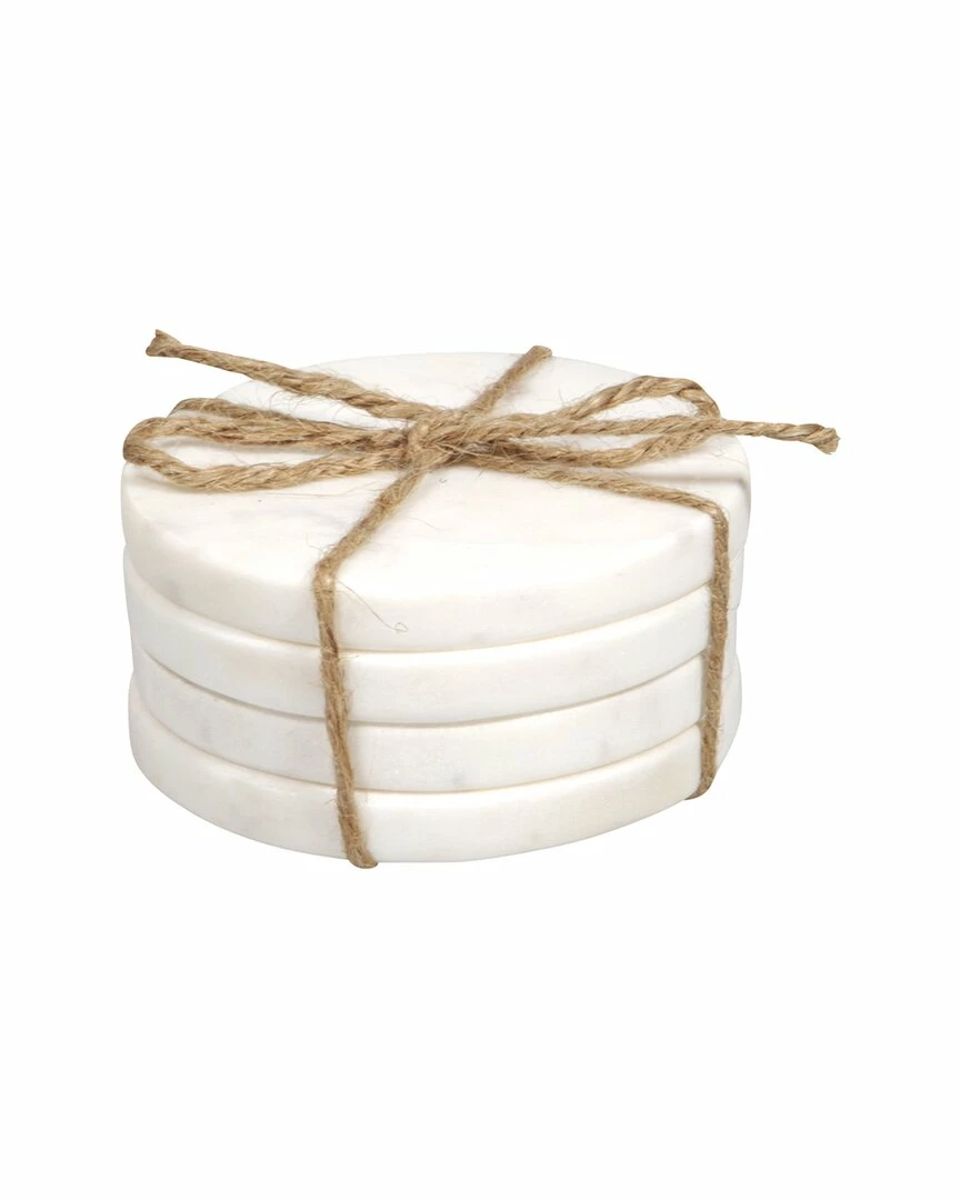 Home Essentials Set Of 4 4in Round Marble Coaster Serveware
