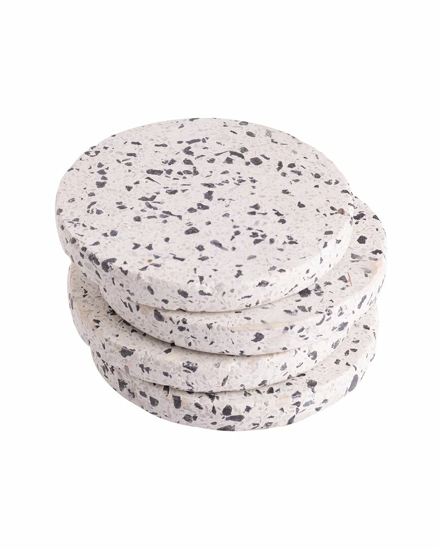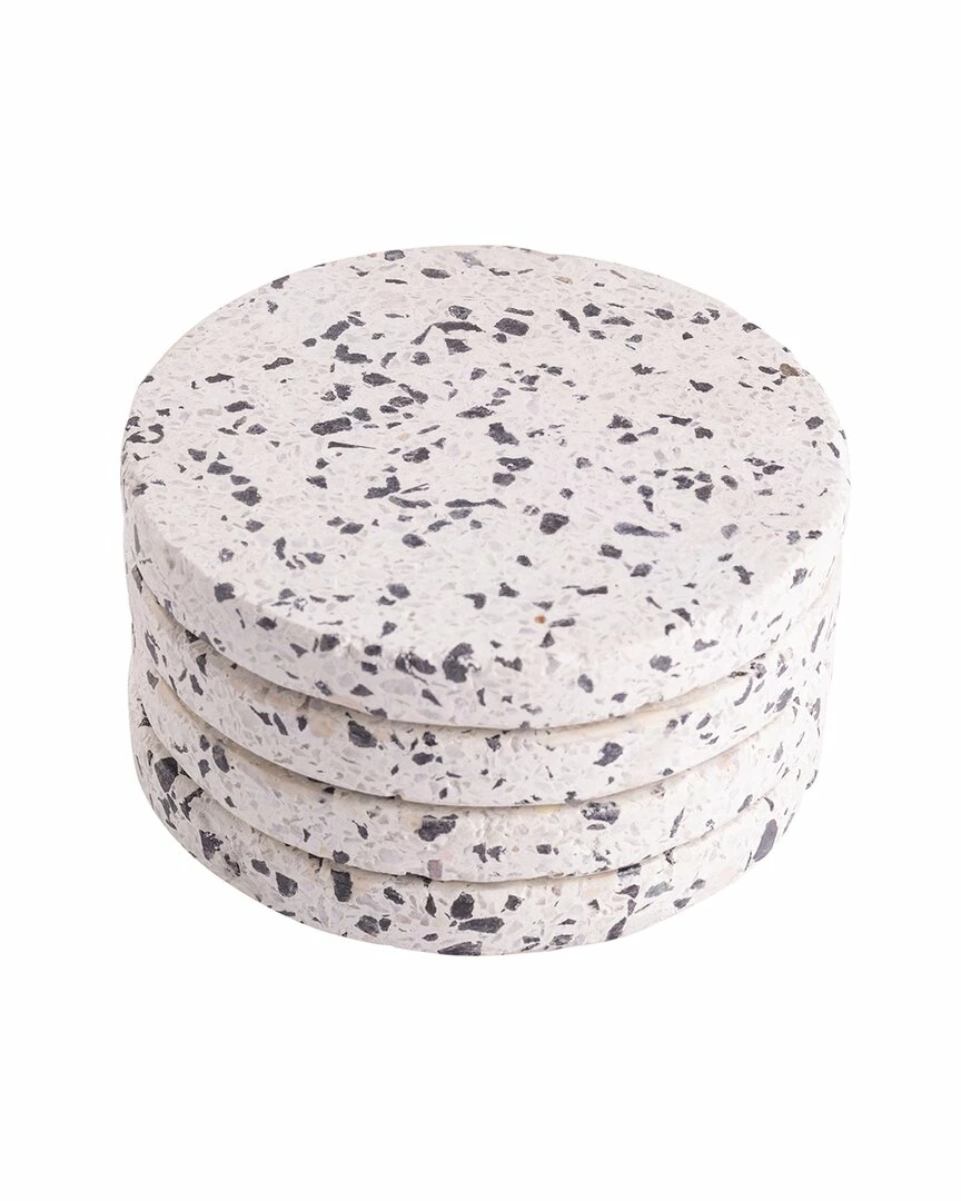 Home Essentials Set Of 4 4Inwht/Blk Rd Terraz Coaster Serveware