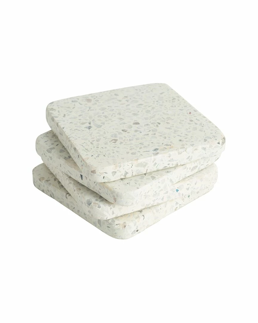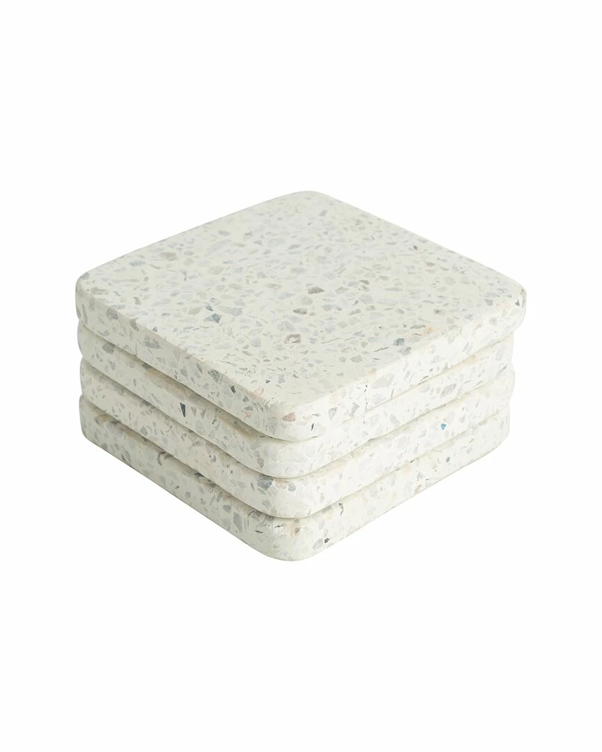Home Essentials Set Of 4 4Inwht/Square Terraz Coaster Serveware