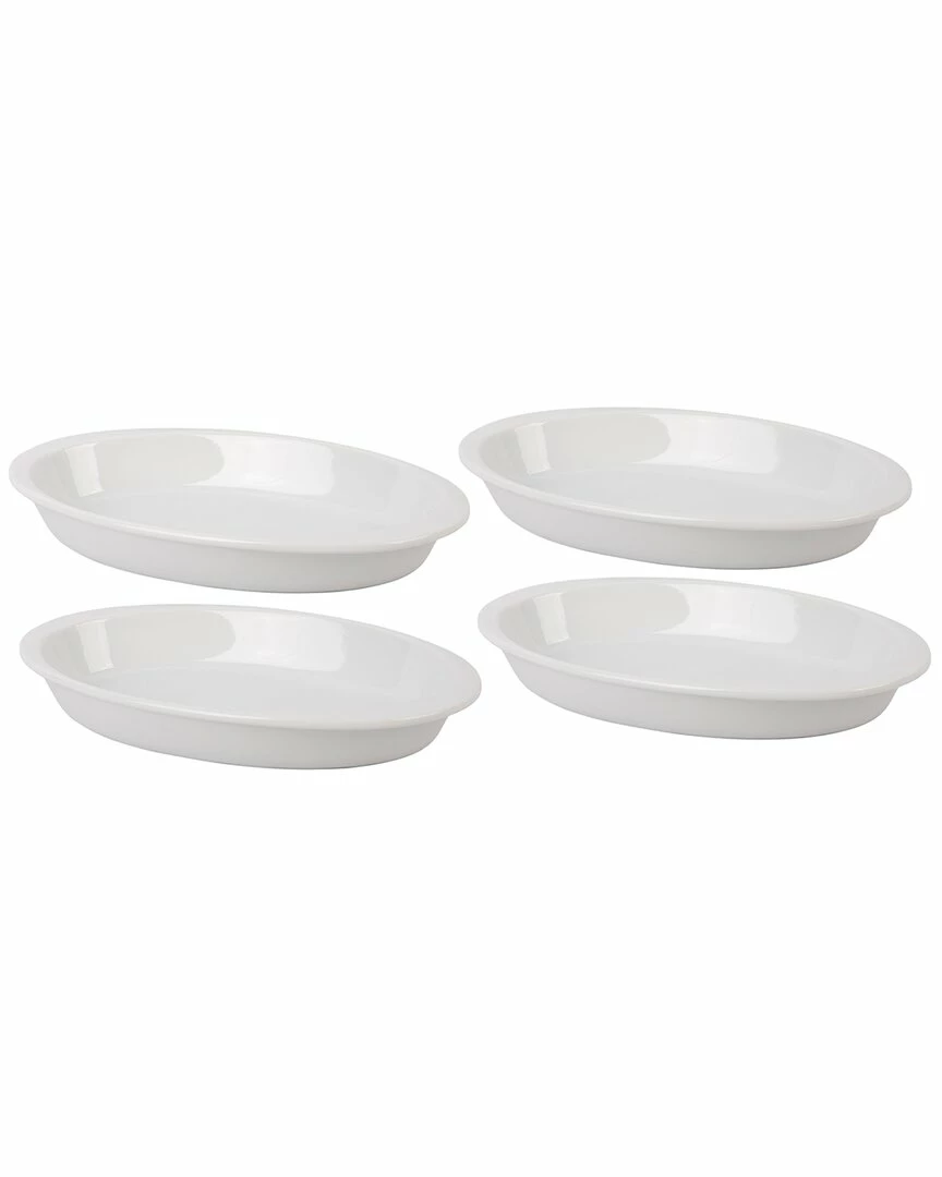 Home Essentials Set Of 4 8in Whit Porcelain Deep Oval Baker Cookware