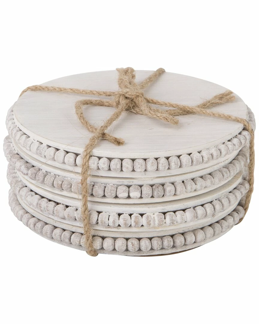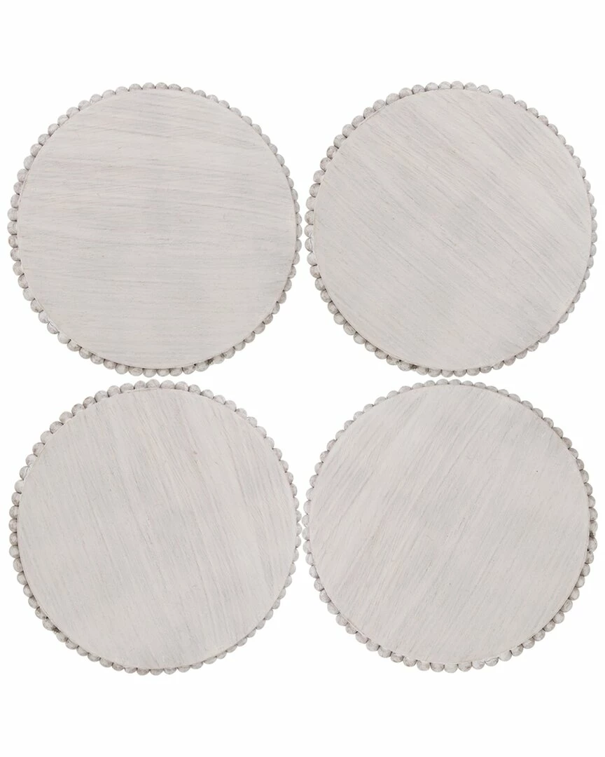 Home Essentials Set Of 4 Rd Beaded Wood Coasters Serveware